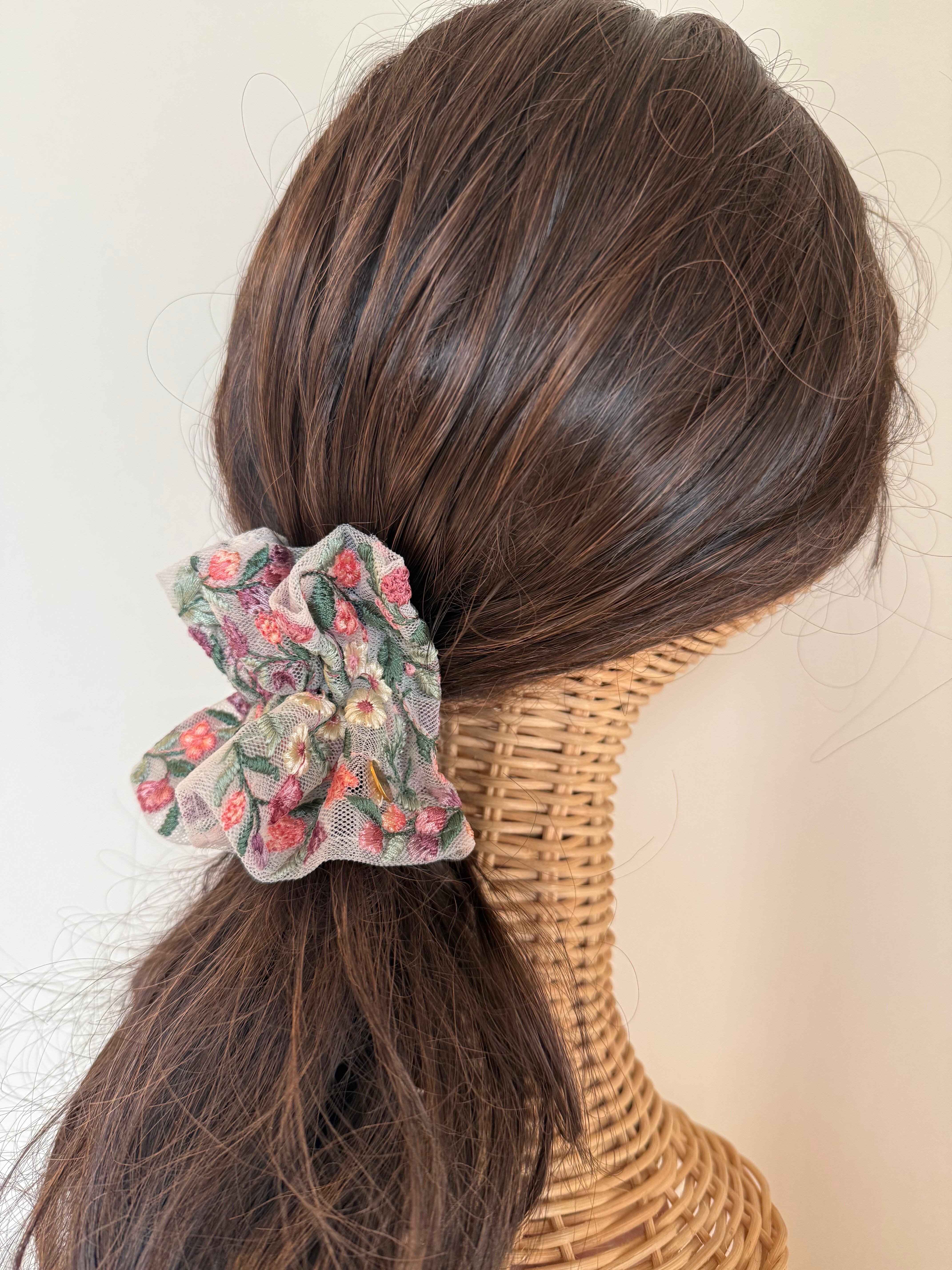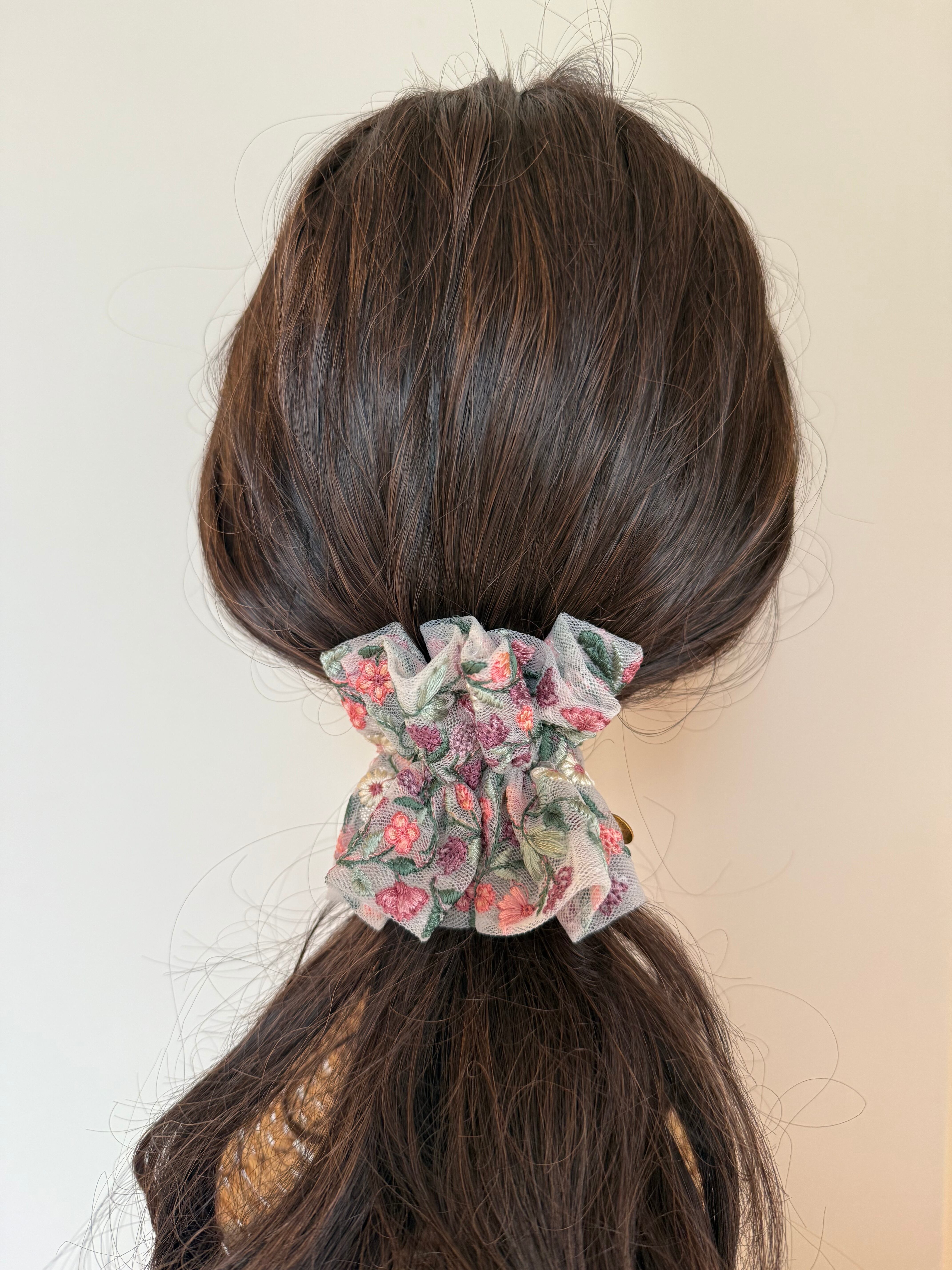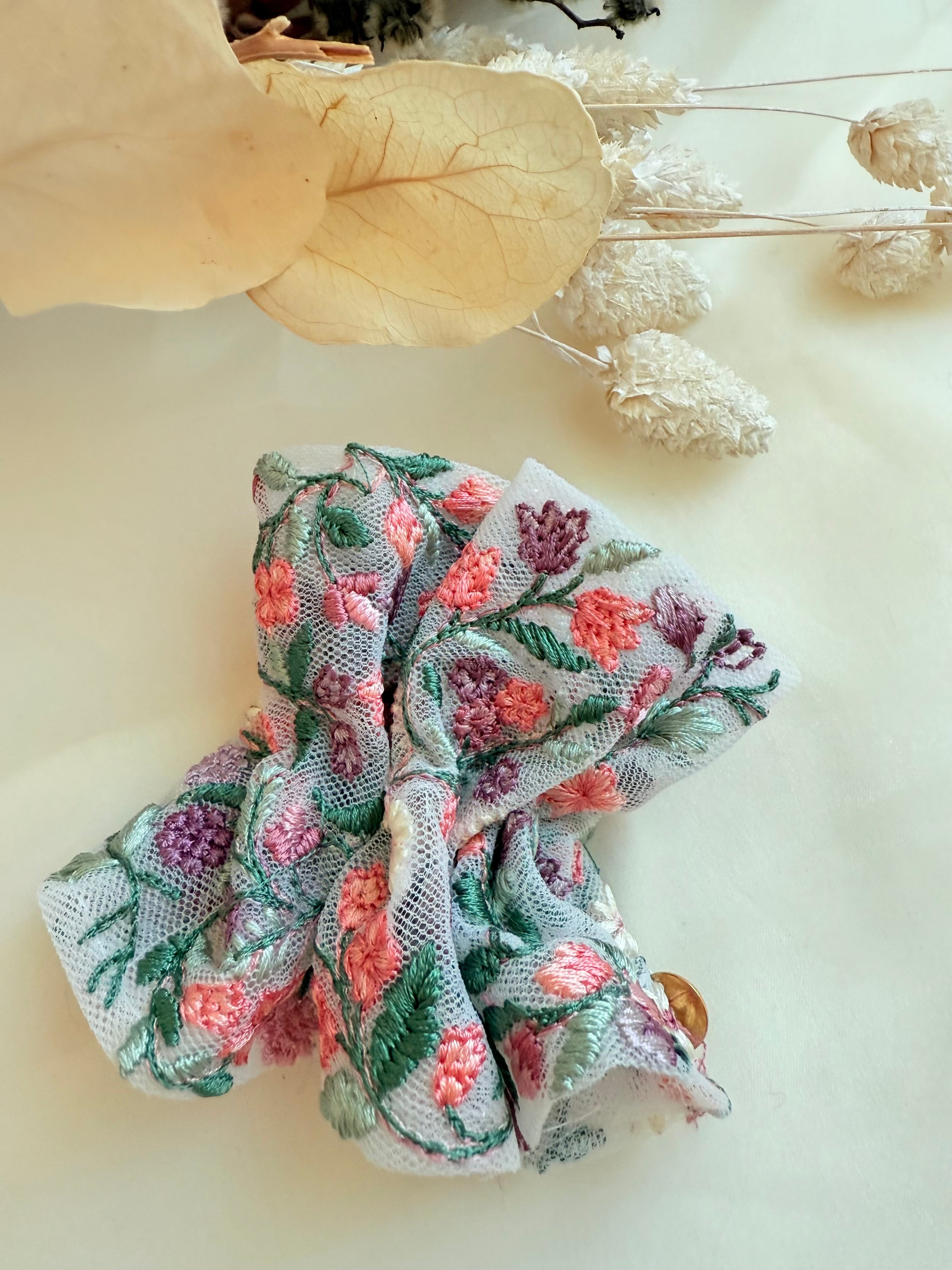くしゅくしゅ質感が可愛い、インド刺繍リボンのポニーフック
