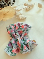 華やかなインド刺繍リボンを贅沢に使い、ギャザーを寄せてふんわりと仕上げたポニーフックです。