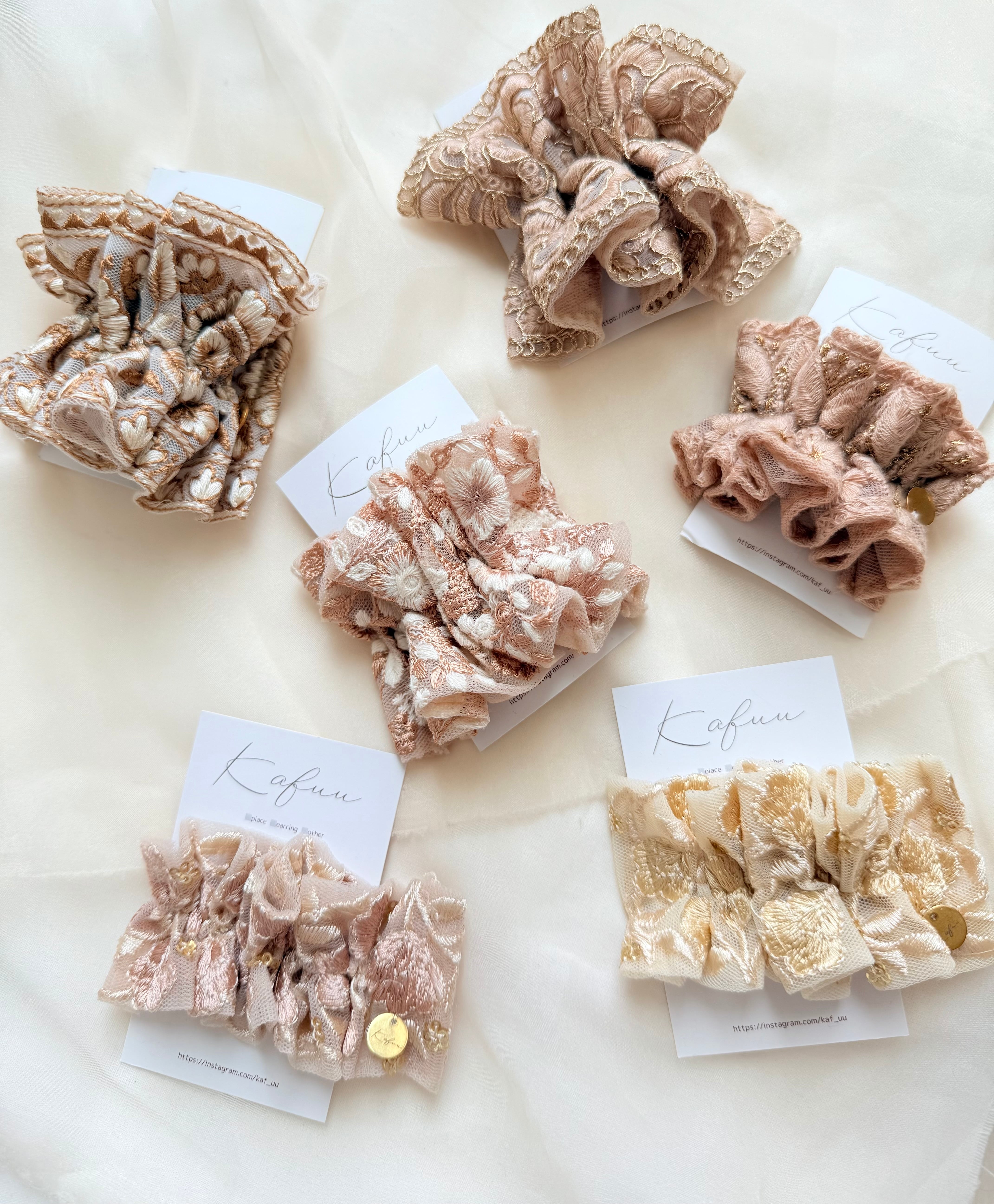 くしゅくしゅ質感が可愛い、インド刺繍リボンのポニーフック