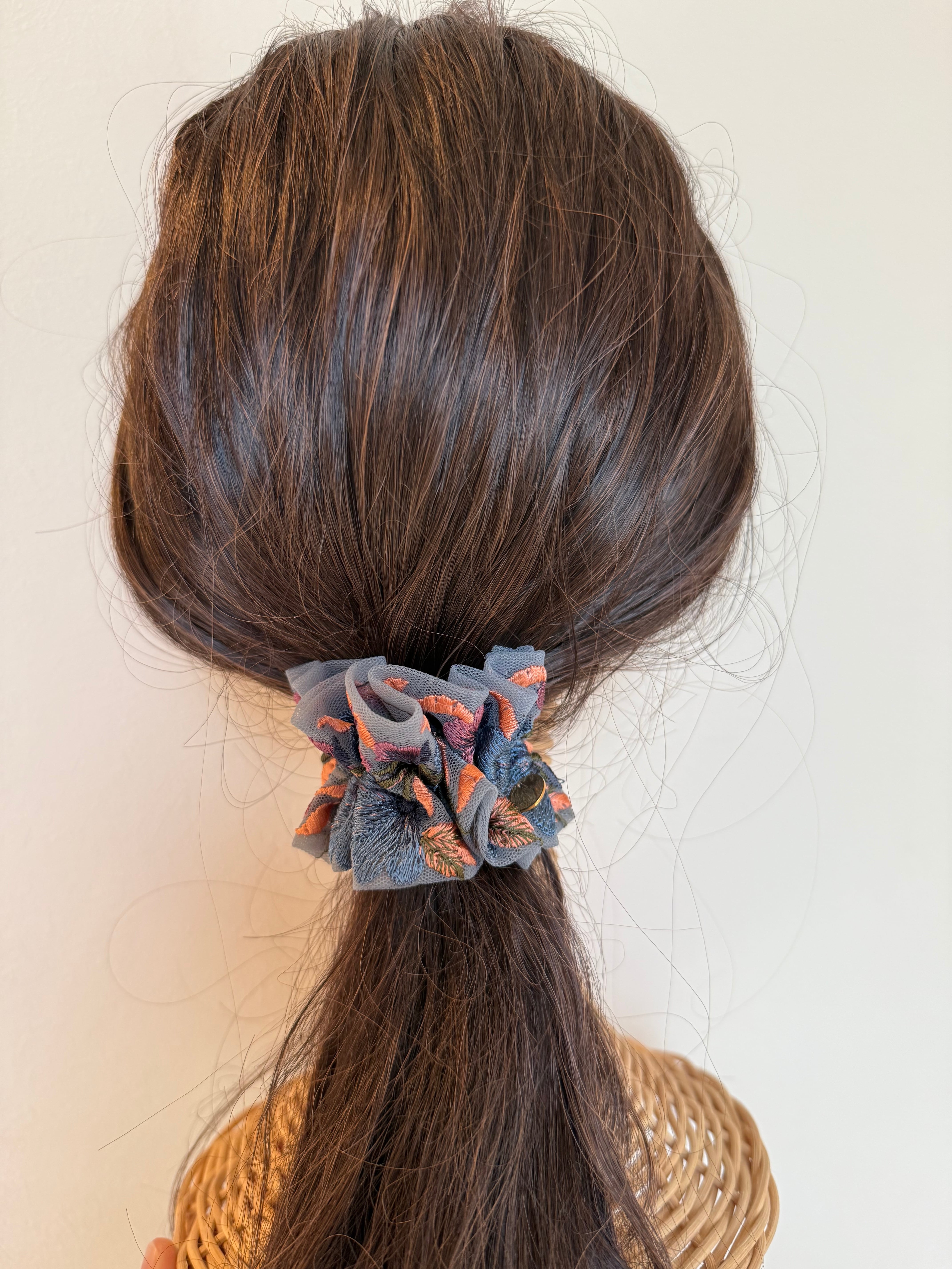 ひとつ結びにふわっと差し込むだけで、後ろ姿がぱっと華やかに。