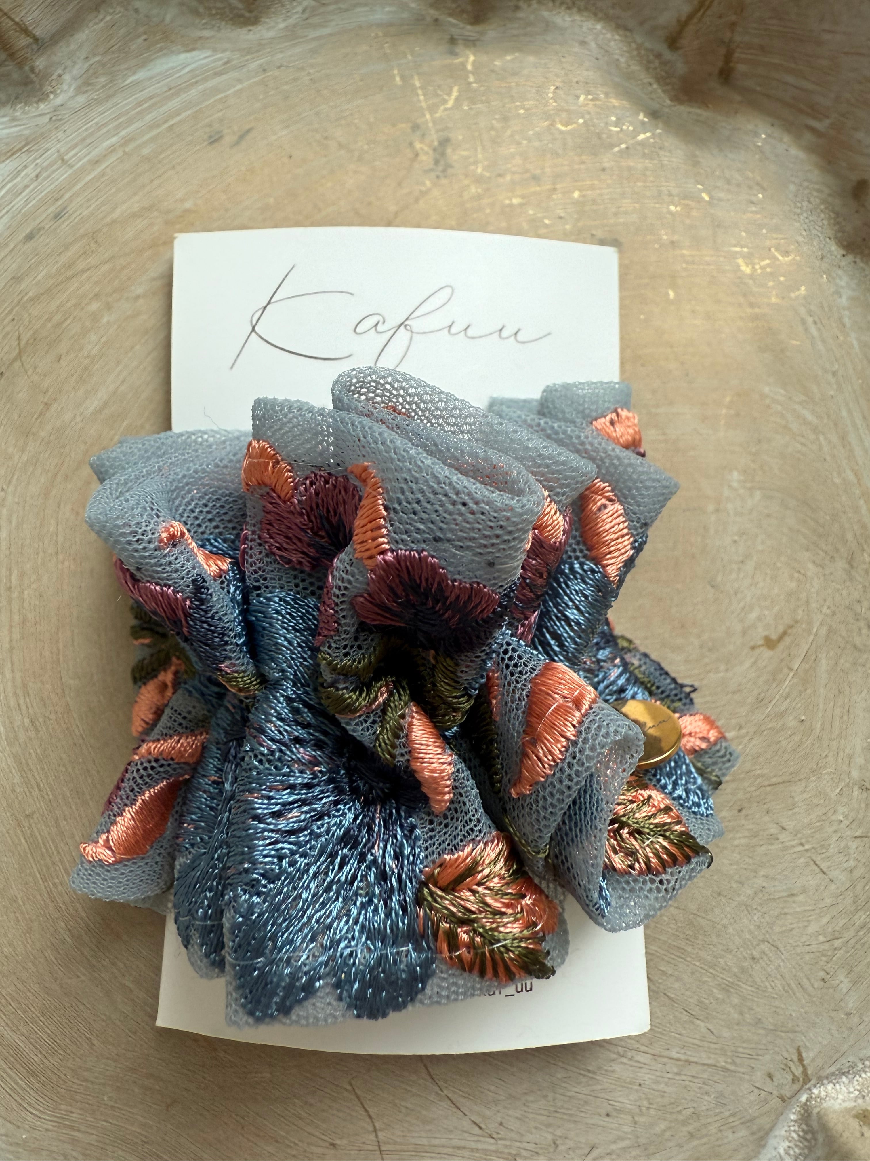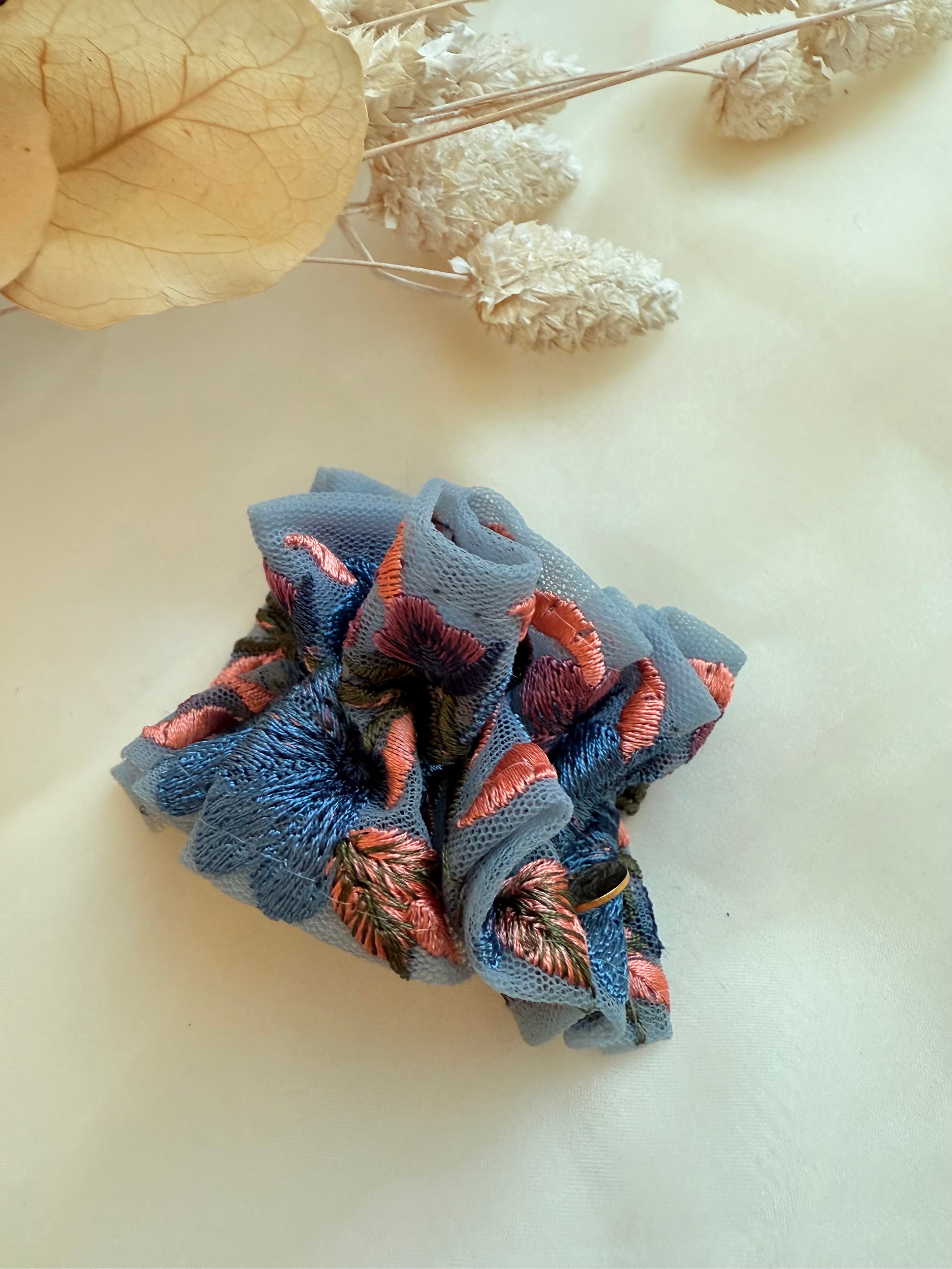 くしゅくしゅ質感が可愛い、インド刺繍リボンのポニーフック
