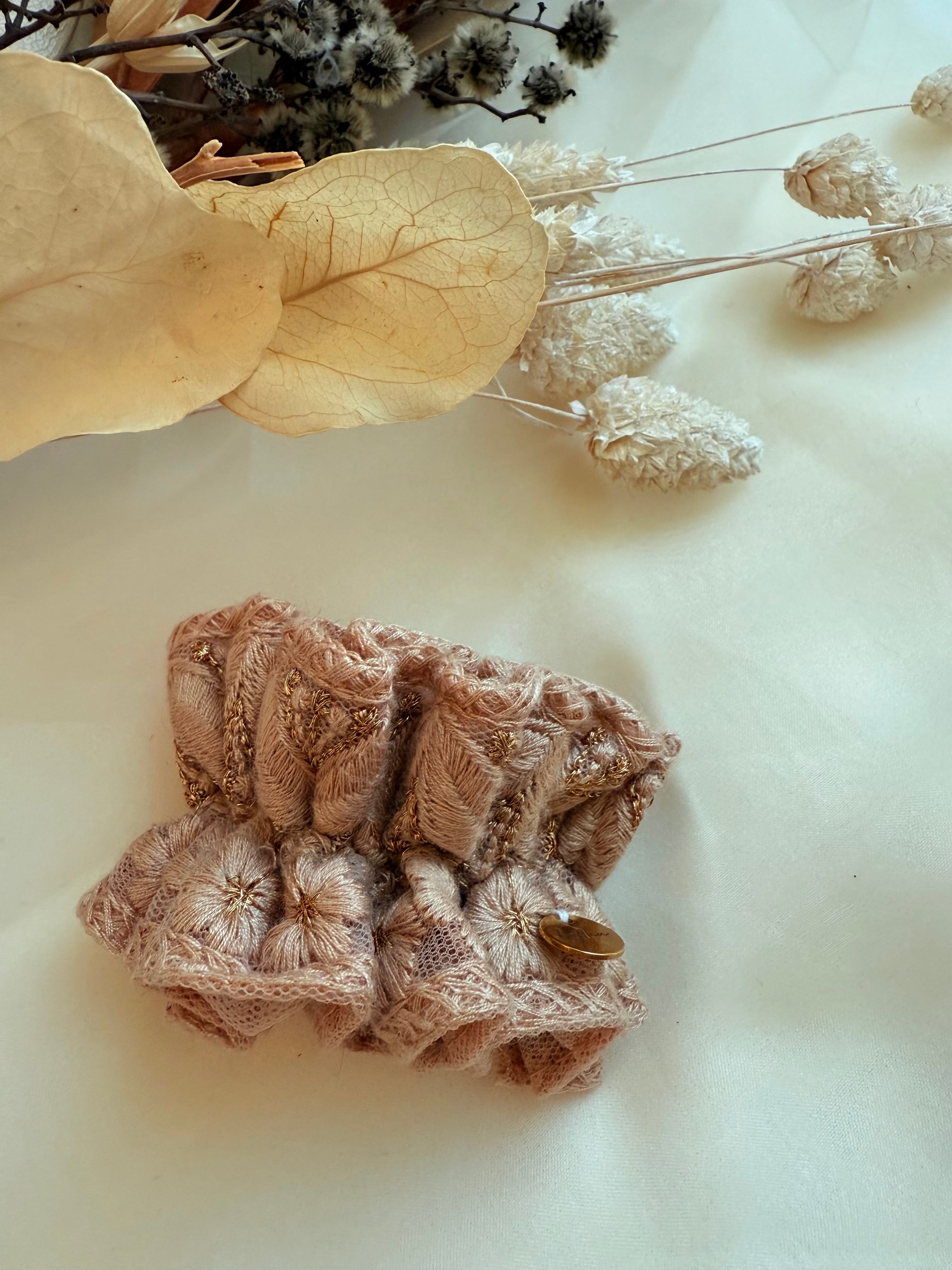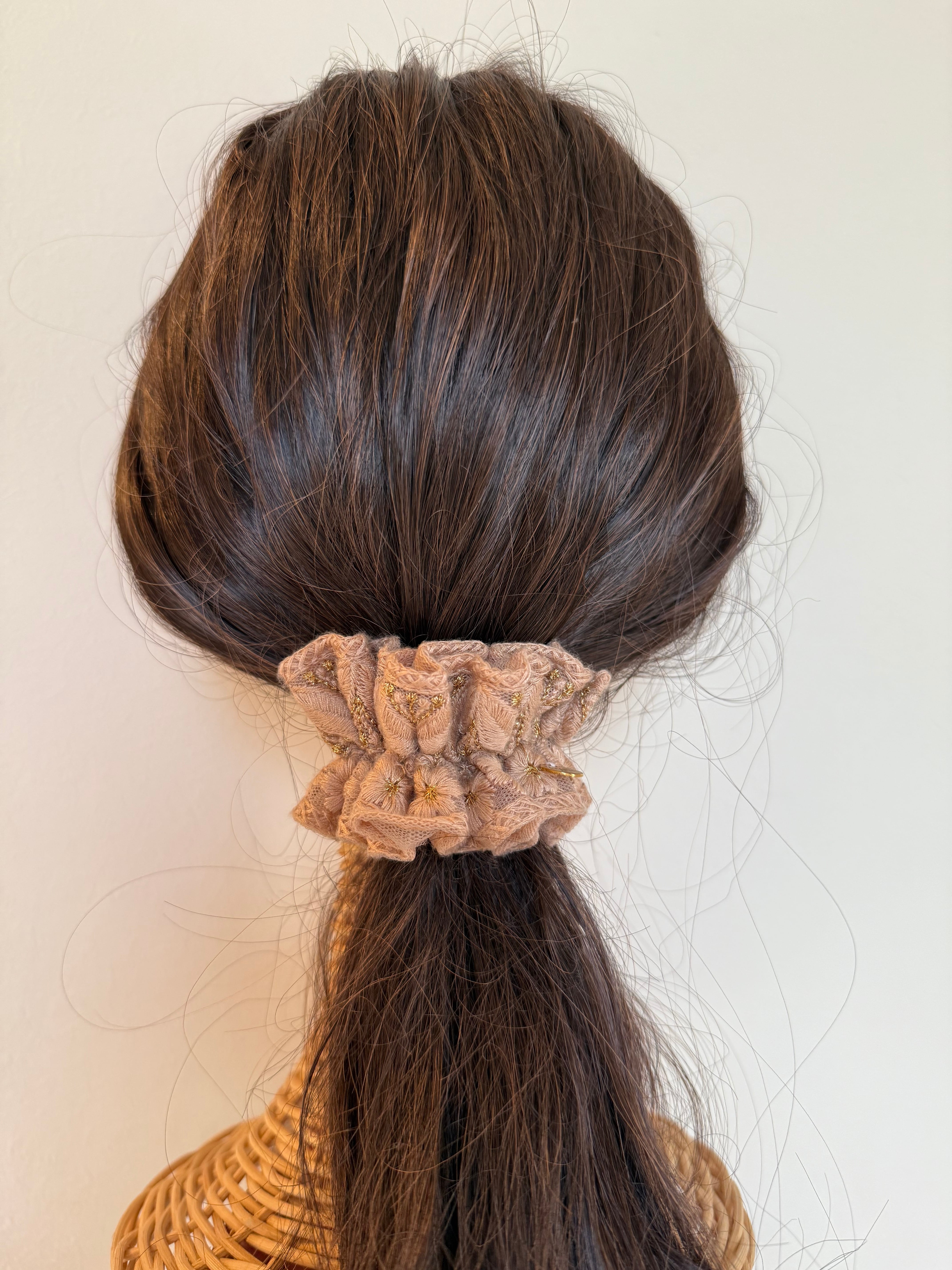 くしゅくしゅ質感が可愛い、インド刺繍リボンのポニーフック